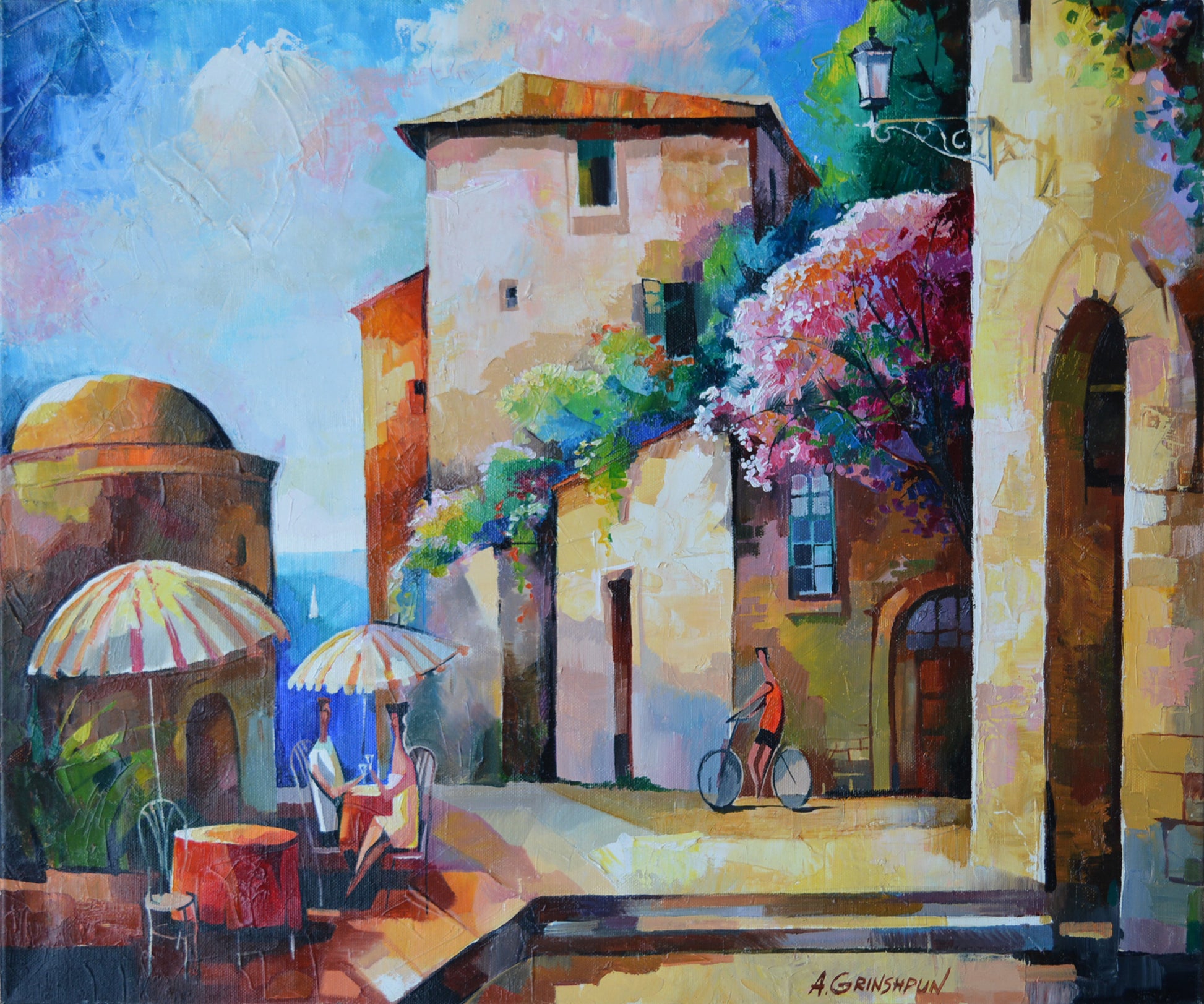 Israeli artist Alexander Grinshpun, born in 1949 in Moldova, graduated from a local art school in 1968 and continued his studies at the Institute of Arts in St. Petersburg, specializing in theatrical decorations. Serving as a theatrical artist from 1974 to 1982, he exhibited his works in various cities. His 1994 exhibition at the House of the Navigator marked a milestone, leading to annual showcases at the Chagall House in Haifa. The apex was the June 2003 exhibition at the Center of Arts in Rishon-Lezion, featuring 80 paintings and resulting in global invitations. Grinshpun's philosophy focuses on renewing his work, embodying a distinctive expressionist-naive style inspired by the Mediterranean landscape.