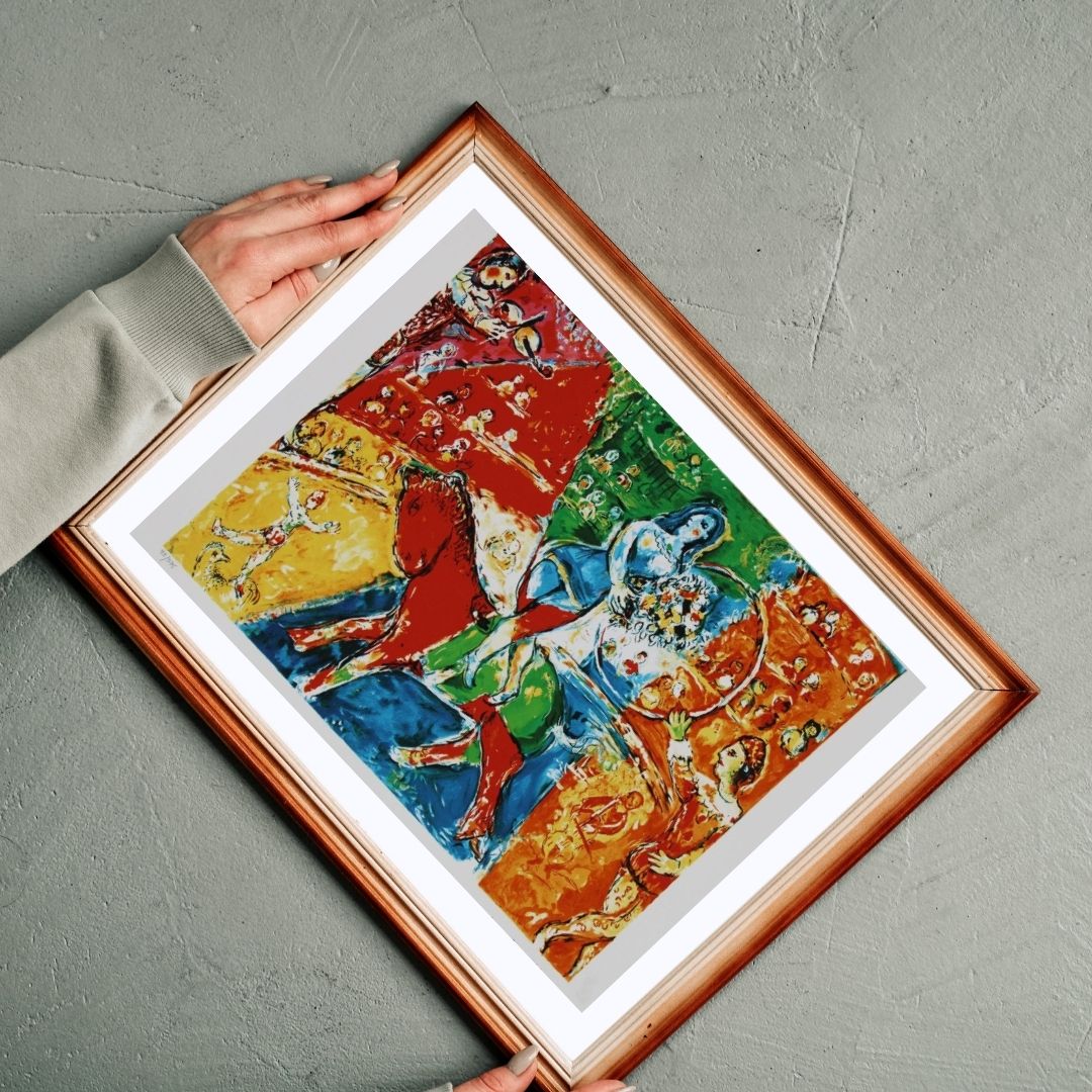 "Marc Chagall (1887–1985) was a visionary Russian-French artist renowned for his distinctive blend of symbolism, surrealism, and modernism. Born in Vitebsk, part of the Russian Empire (now Belarus), Chagall's early immersion in Jewish culture profoundly influenced his artistic expression. His studies in Saint Petersburg and Paris exposed him to influential art movements, but Chagall maintained his unique style, characterized by vibrant colors and dreamlike imagery.