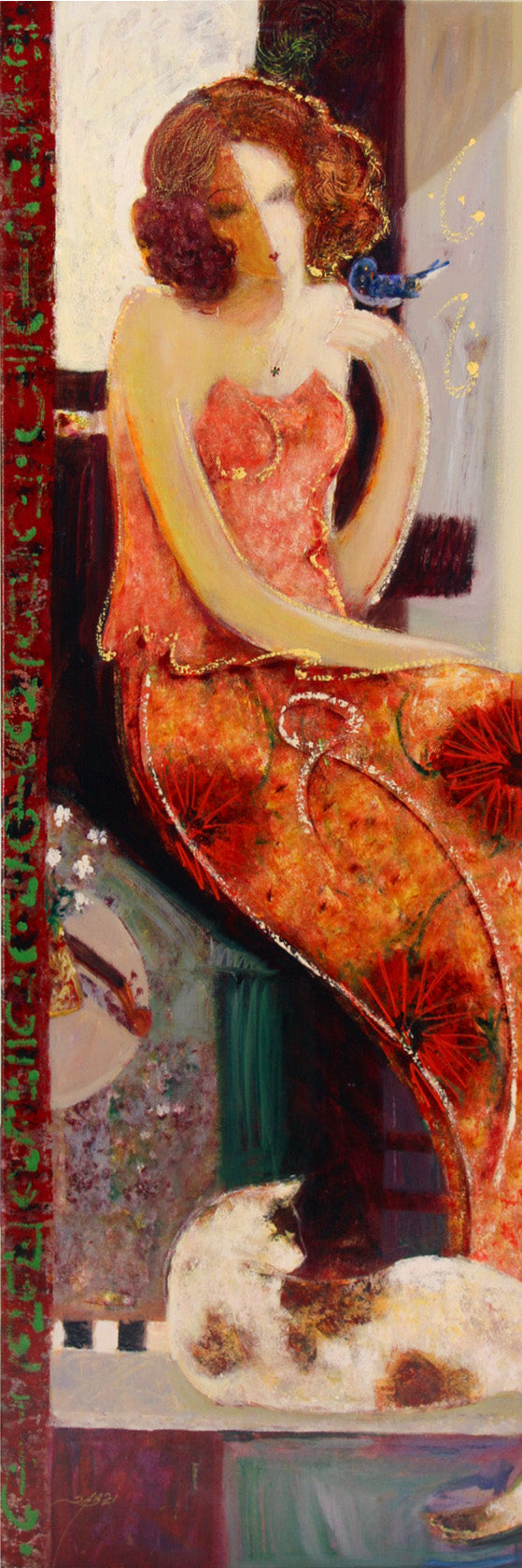 Mahmood Sabzi, born in Ahvaz, Iran, in 1943, is a celebrated contemporary artist known for his vibrant and evocative paintings. Combining modern abstraction with Persian cultural elements, his work often features graceful female figures and intricate patterns. Sabzi's art, rich in themes of love and mysticism, has gained international acclaim. He currently creates and resides in California.