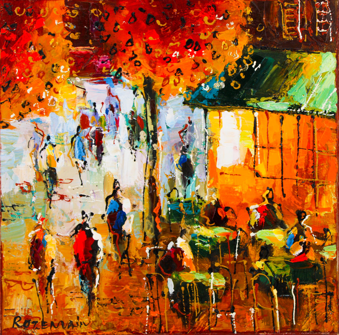 Michael Rozenvain is a Ukrainian-born artist known for his textured, vibrant cityscapes, cafés, and abstract compositions. His expressive brushstrokes and rich color palette bring dynamic energy to his work, capturing the charm of urban life and cultural vibrancy.