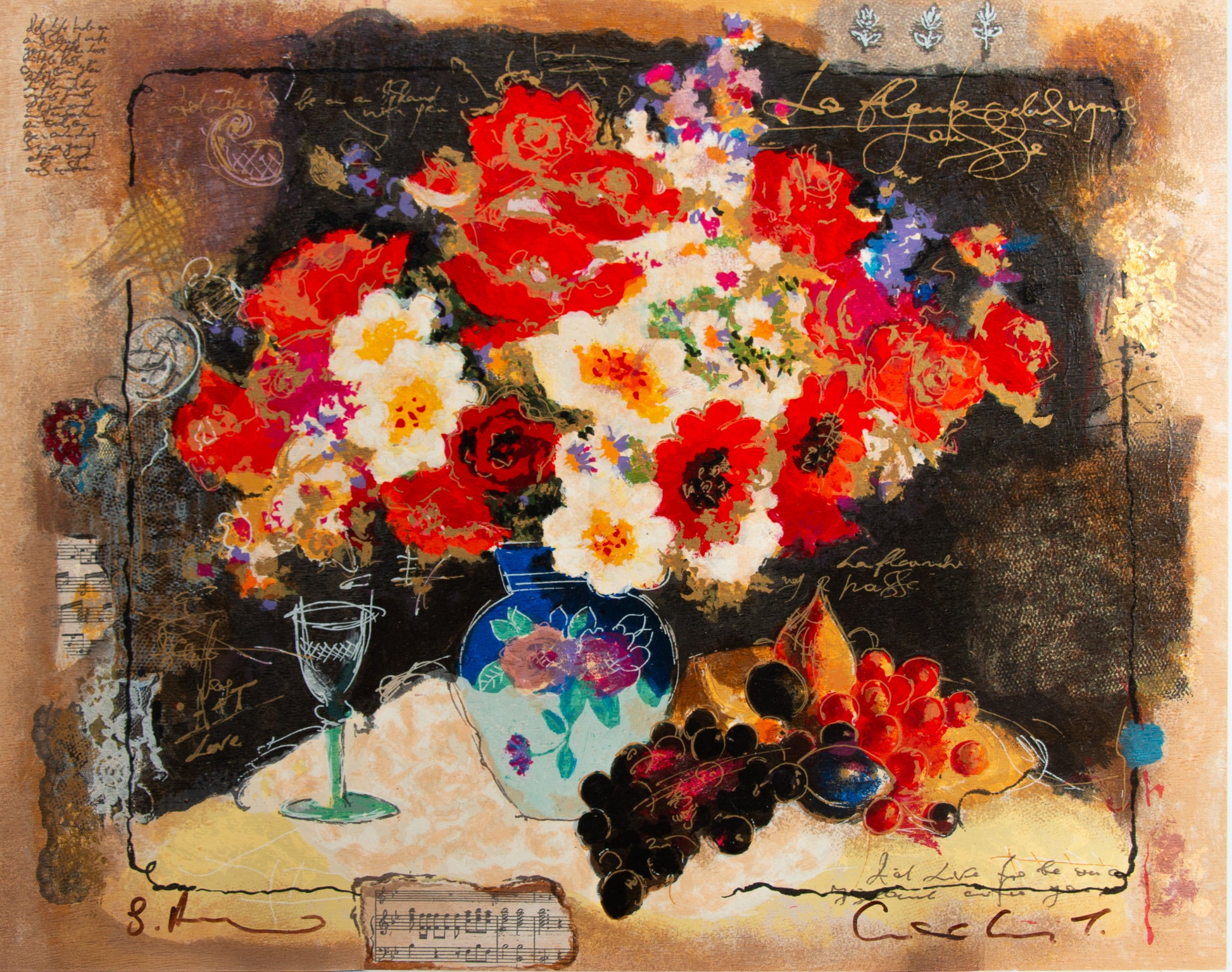 Flowers with a Glass of Wine