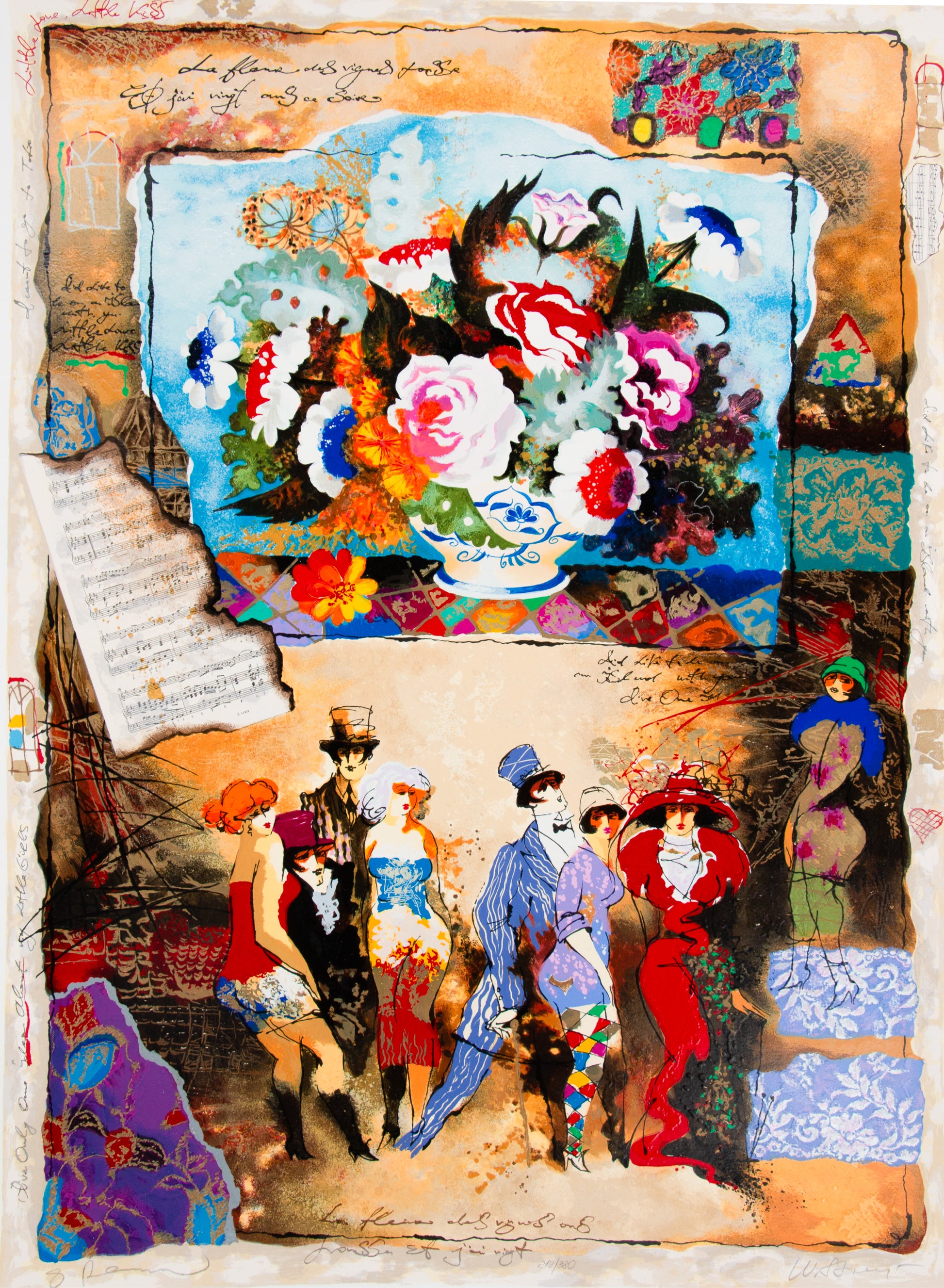 Born in 1959 in Crimea, Ukraine, Tanya Wissotzky and Alexander Galtchansky, after separate art school educations, continued their studies at the Kiev Institute of the Arts. Wissotzky focused on painting, while Alexander pursued book illustration. After marrying, they moved to Israel, collaborating in acrylic, pen and ink, and collage on prepared canvas. Their still lifes incorporate calligraphic excerpts and nostalgic quotes, evoking 1920s Paris. Their acclaimed work is displayed globally, featured in exhibitions from New York to Hamburg. Permanent exhibitions include Binyanei Hauma in Jerusalem, with their life and work explored in a published book.